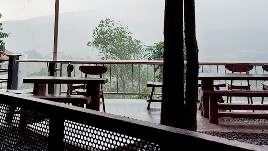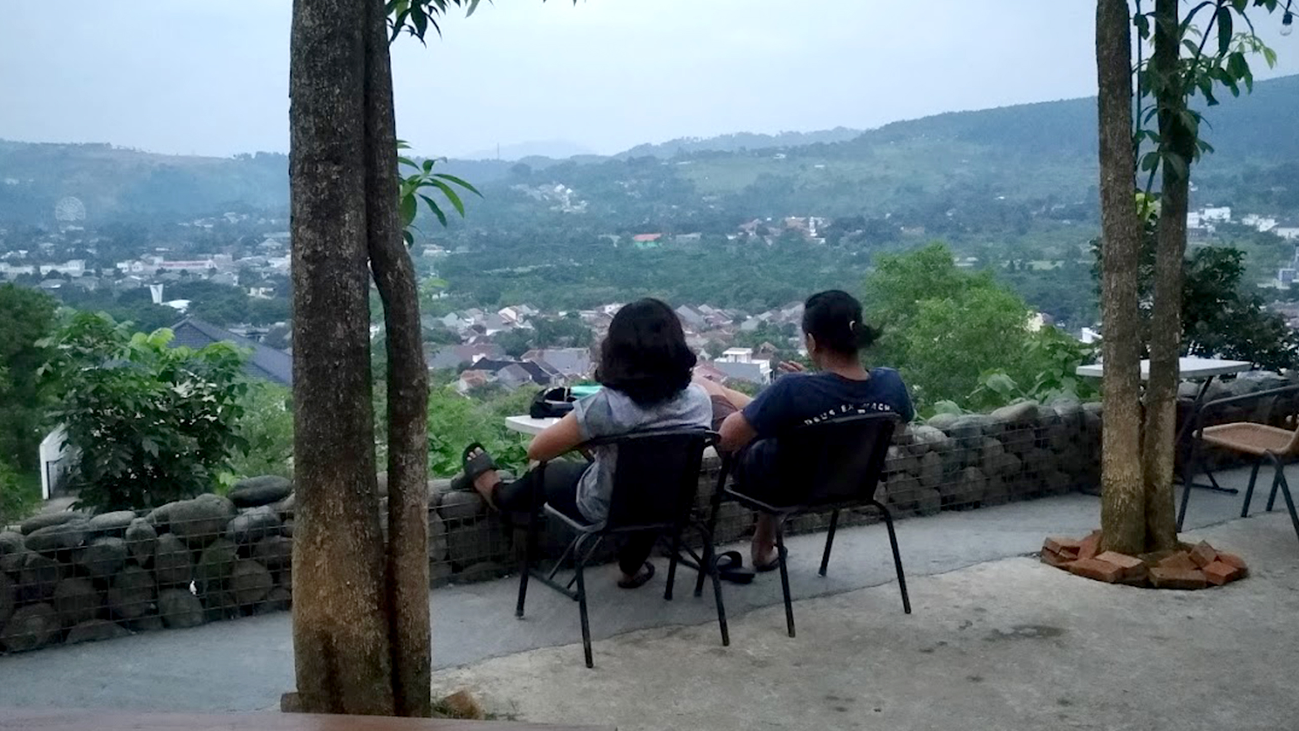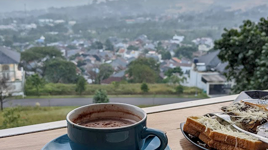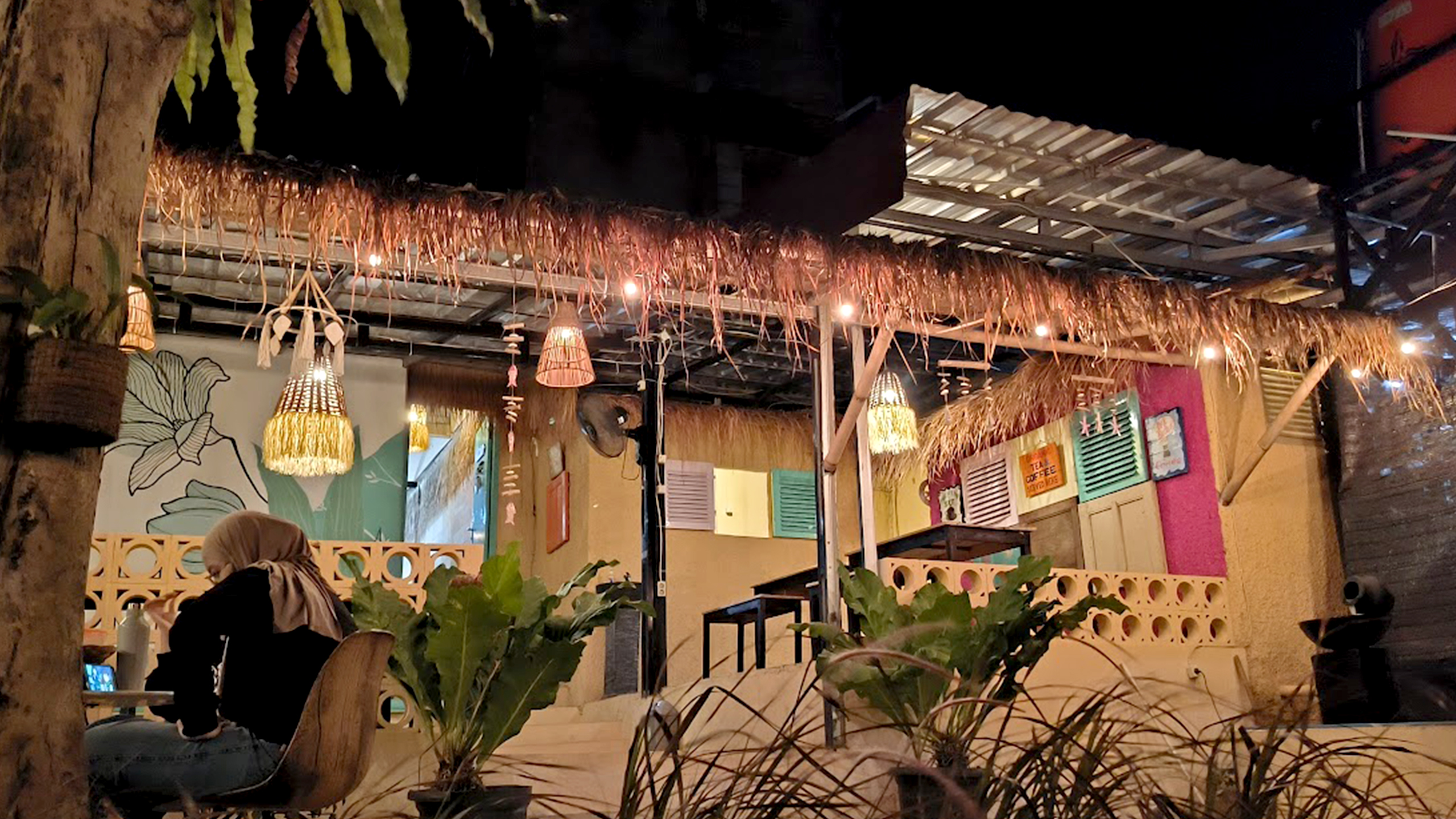 cafe with night view of city lights